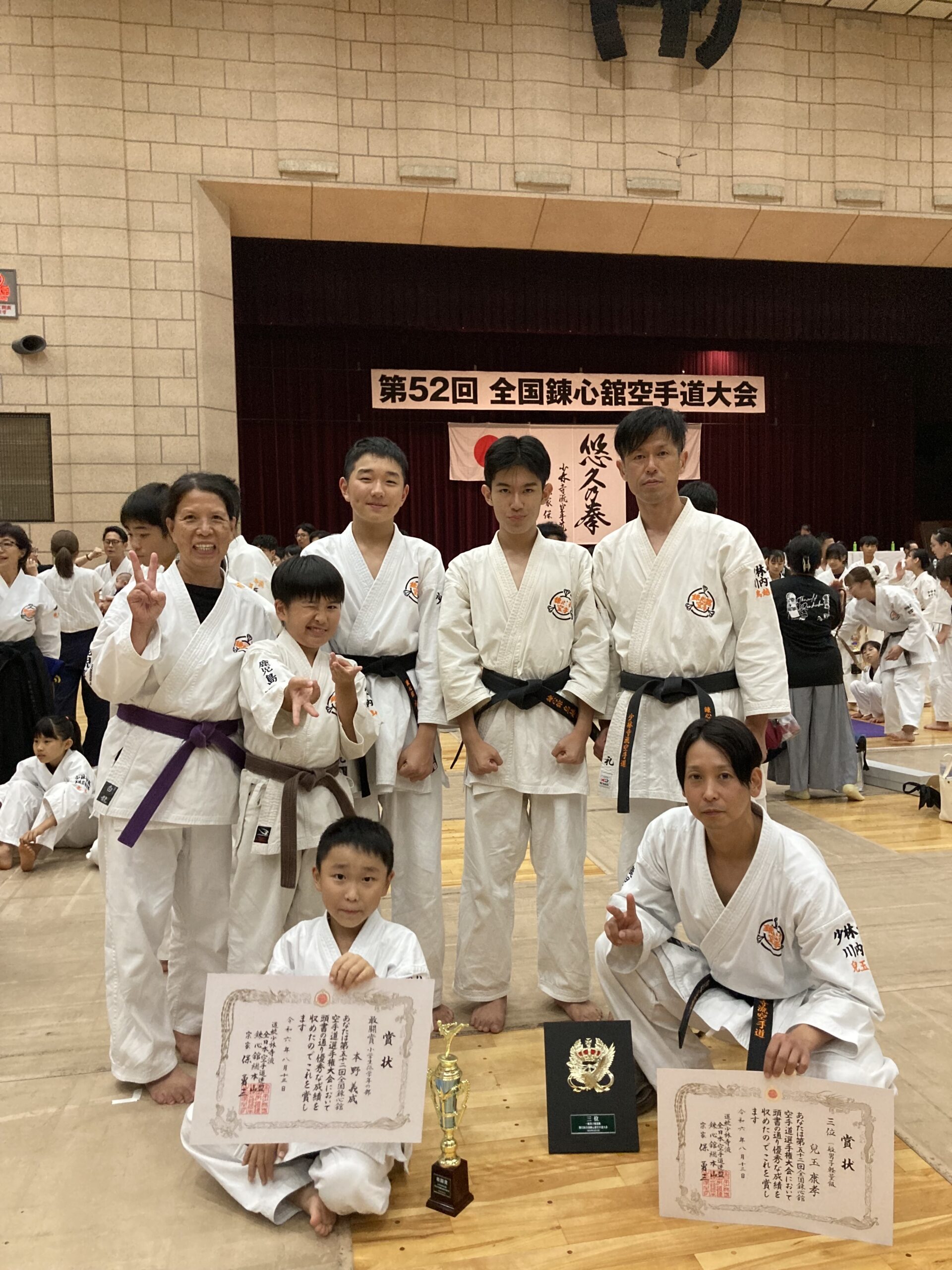 川内南支部・川内支部から7名出場。【型】小学生低学年の部 ベスト8(敢闘賞)入賞!【組手】一般軽量級第3位に入賞しました! 2024 8/16 未分類 2024.08.16 未分類 8月13日に兵庫県で全国大会が開催されました。 その他のお知らせ 【黒帯会】黒帯だけの組手稽古を始めました。毎月第2土曜日18:00~20:00 2025.04.13 【阿久根】で生徒募集中です。 2025.04.12 4月5日センノオトで体験イベントをしました。 2025.04.06 3月16日 SENDE FESTA 舞台演武に参加しました。川内川河川敷のイベントです。多くの人が来場していました。 2025.03.16 4月5日(土)10時~11時 センノオトで無料体験イベントを実施します。興味のある方は、センノオトHPから申込して下さい。 2025.03.09 川内南支部。小学4年生の、学校の友達が入会しました。永利地区コミュニティーセンターで、毎週日曜日17:00~18:50に稽古してます。 2025.03.08 2025.02.08 中央の男の子、幼児(5歳)です。川内支部・川内南支部は、幼児から大人まで、約70名在籍しています。興味のある方は、お気軽にお問い合わせください。 2025.01.25