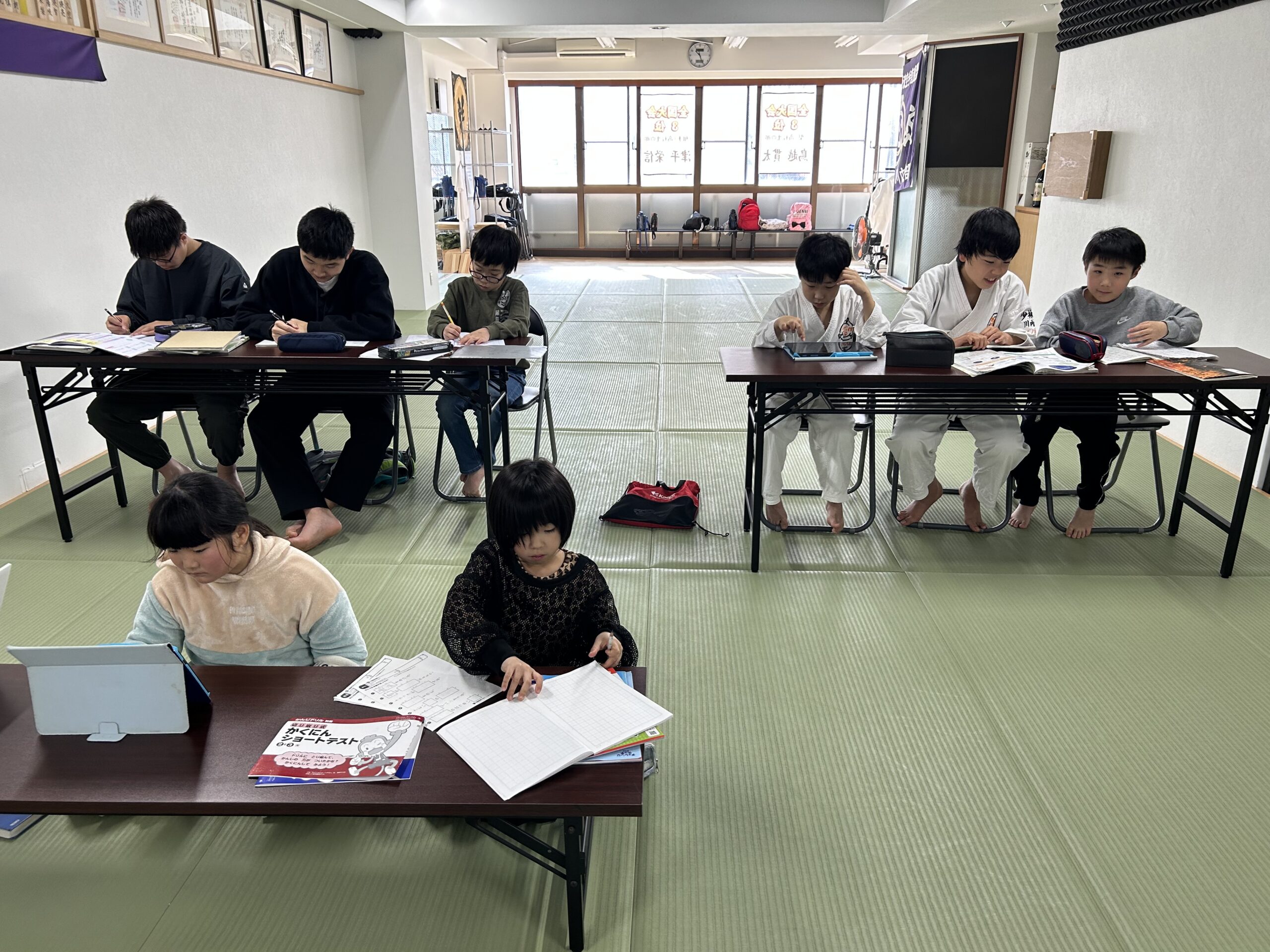 毎週土曜日(第2土曜以外)9:00~11:15 稽古後に45分間の学習時間があります。各自、週末の宿題等を自学してます。