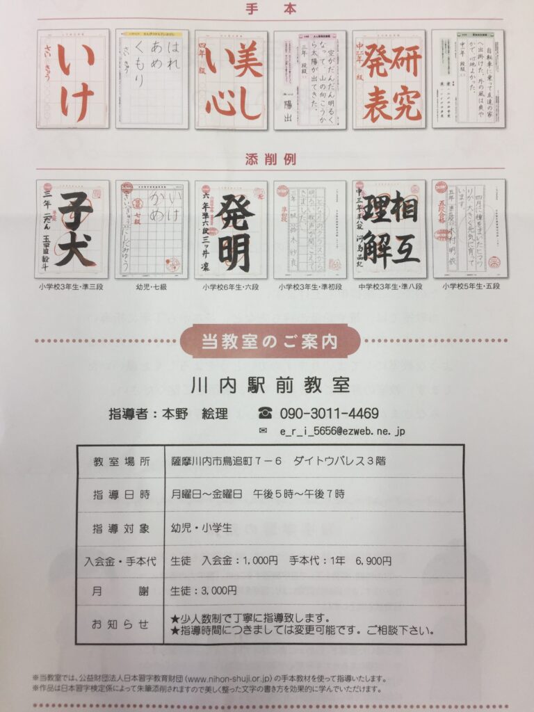 習字教室のご案内。
